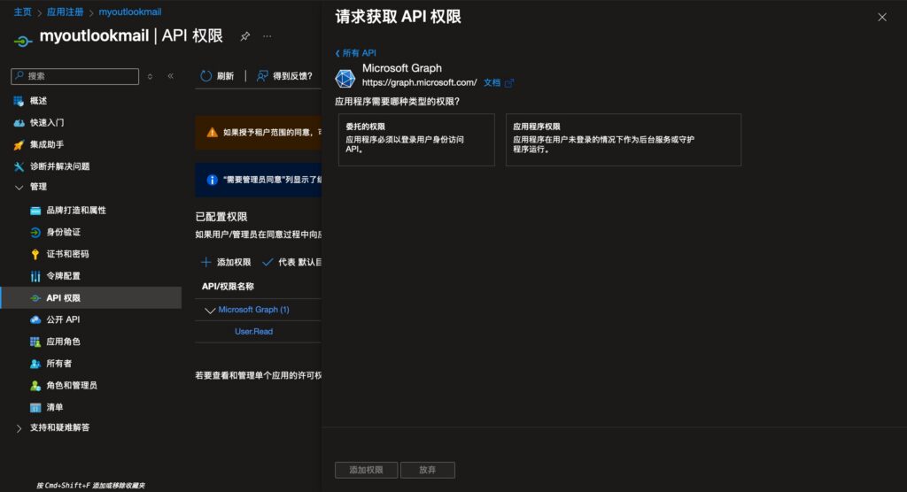 个人账号注册Azure应用,解决不能访问Outlook邮箱必备。